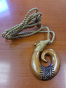 Hand Carved Tribal White Buffalo Bone Dragon Fish Hook Necklace